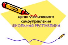 22.09.2015 Прошло Торжественное заседание Орг. комитета Школьной Республики Самоуправления. На собрании присутствовал актив школы, во главе с заместителем директора по воспитательной работе Булатовой Н.С., педагогами организаторами Лемеховой В.П. и Резенковой А.Р. Ученическое самоуправление в школе находится в состоянии постоянного развития, что связано с изменениями, происходящими в обществе в целом. Большинство классных руководителей поддерживают данную технологию, т.к. она позволяет выстроить воспитательную систему в целом.