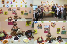 В школьной столовой прошел ежегодный традиционный конкурс поделок из овощей и фруктов "Дары осени". 1 место разделили между собой учащиеся 2 и 3 классов.