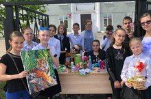 Благотворительная ярмарка "Открытые сердца". Творческие работы учащихся школы были реализованы неравнодушному населению города. Помогали в продажах учащиеся 5-7 классов.