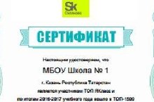 По итогам 2016 - 2017 учебного года наша школа вошла в ТОП -1500 лучших школ РФ!