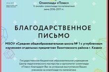 Муниципальное бюджетное общеобразовательное учреждение «Средняя общеобразовательная школа № 1» Вахитовского района г. Казани - новости