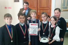 Наши юные знатоки по игре "Что? Где? Когда?", занявшие почетное 3 место среди всех школ города! Поздравляем от всей души и желаем в следующем году занимать только первые места
