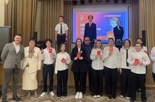 Торжественная линейка для обучающихся 7а, 8а, 8б классов с вручением значков "Движение первых" и обложек для паспорта.