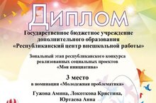 Поздравляем призёров Гужову Амину, Локоткову Кристину и Юртаеву Анну с получением III места Зонального этапа республиканского конкурса реализованных социальных проектов "Моя инициатива" в номинации "Молодёжная проблематика".