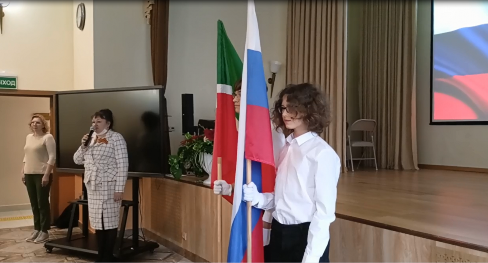 Опубликовано: 25.04.202225 апреля в актовом зале гимназии прошла торжественная линейка с пением гимнов РФ и РТ, а администрацией были озвучены ближайшие новости на неделю.