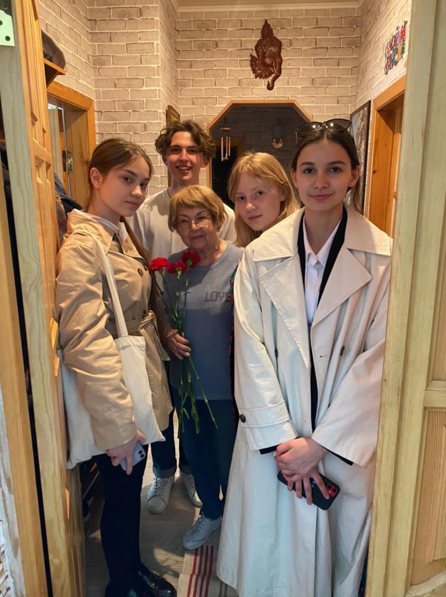 Опубликовано: 04.05.20224 мая ученики 10а класса члены ДОО "Мы - гимназисты" навестили и поздравили ветеранов микрорайона гимназии с 77-й годовщиной Победы в Великой Отечественной войне 1941-1945гг.