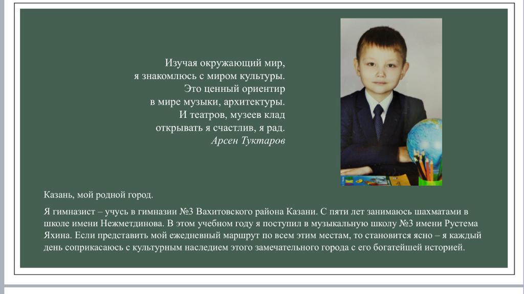 Опубликовано: 09.05.2022Поздравляем ученика 2б класса Туктарова Арсена - призера районного этапа республиканского конкурса «Культурный дневник школьника».