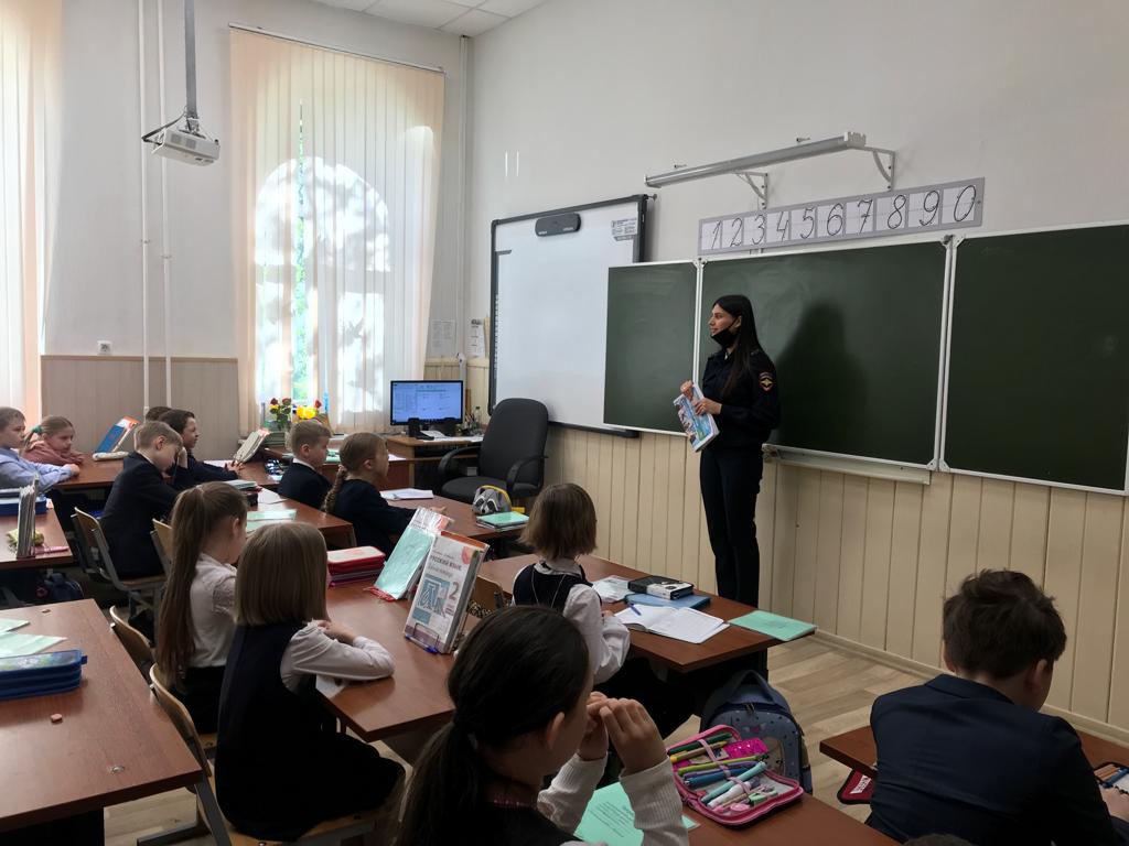 Опубликовано: 20.05.202220 мая 2022 года, для учеников 2б и 4б классов,старший инспектор отдела ГИБДД города Казани капитан полиции Низамиева Г.Х. провела беседу о правилах безопасного поведения на дорогах во время летних каникул.