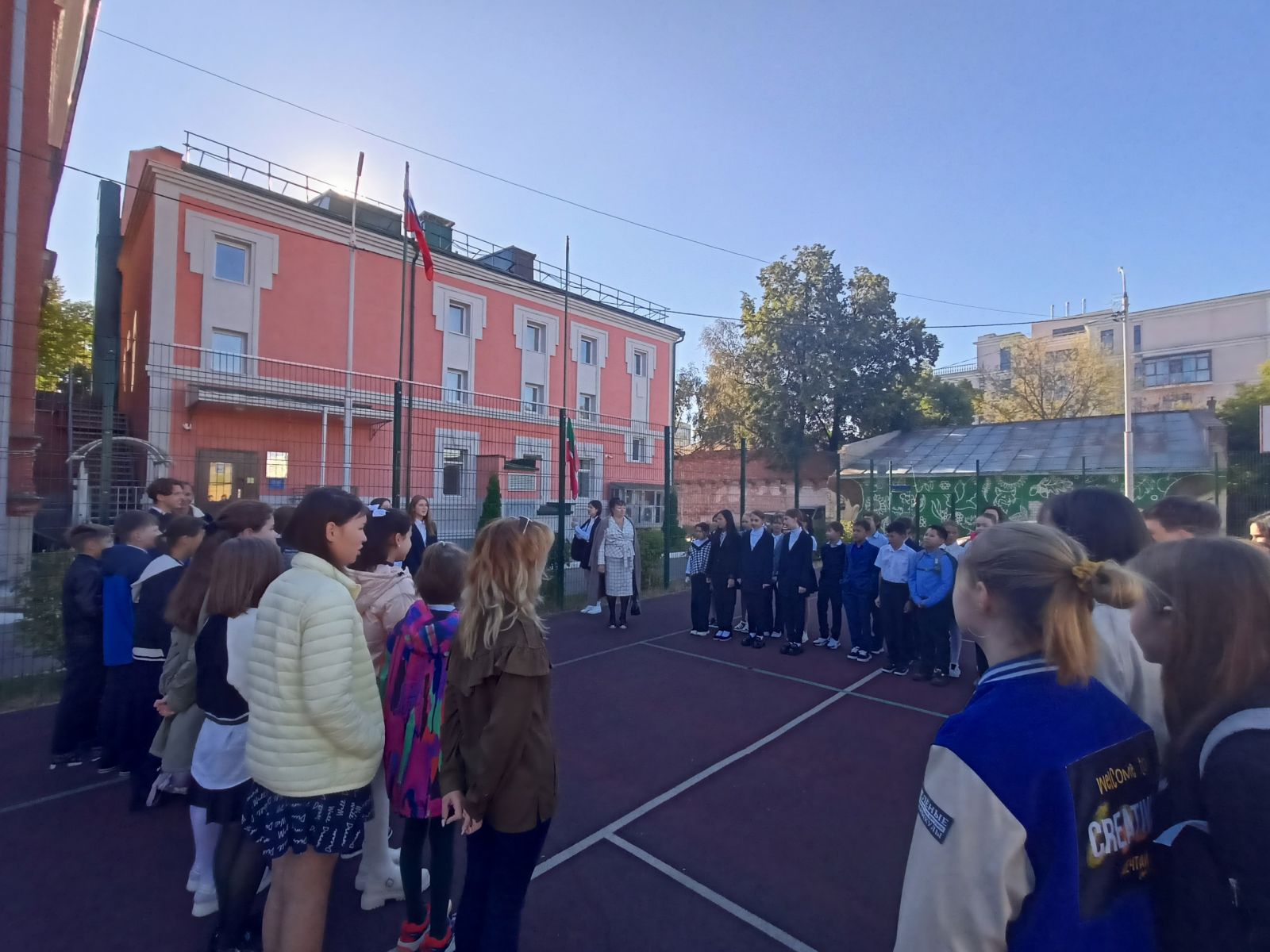 Опубликовано: 05.09.20225 сентября 2022 года в гимназии прошла Торжественная линейка с пением гимнов и поднятием флагов РФ и РТ. Были озвучены планы на неделю и пожелания успехов в учёбе. .jpg)
