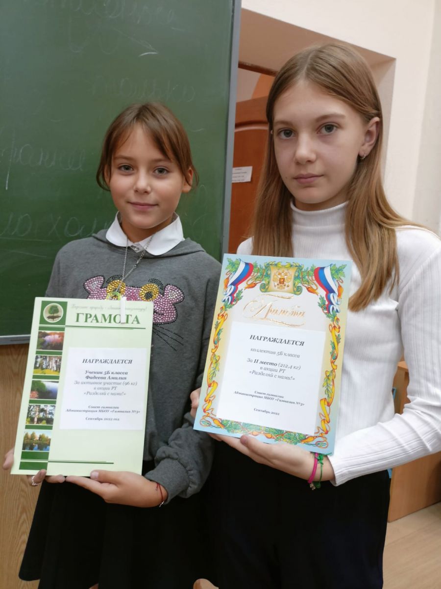 Опубликовано: 30.09.202230 сентября подошли итоги проведения благотворительной акции РТ "Разделяй с нами!", в рамках которой ученики гимназии приносили макулатуру в гимназию.