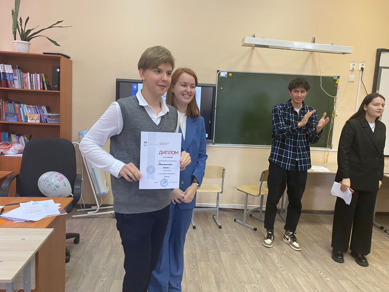 Опубликовано: 21.10.202221 октября прошёл историко-правовой квиз в 10 классе, организованный юридическим факультетом КФУ.