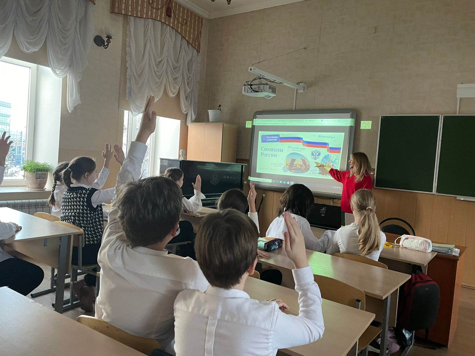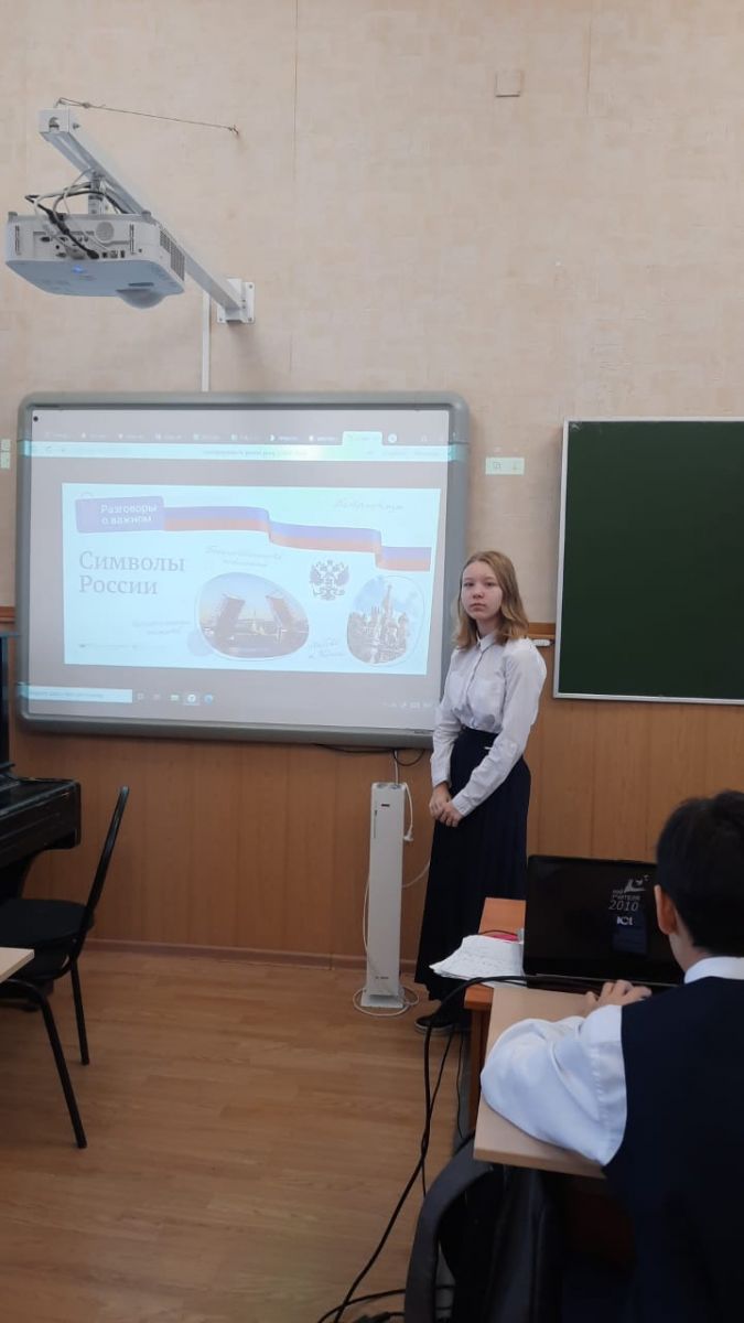 Опубликовано: 28.11.202228 ноября для всех классов гимназии прошёл Всероссийский внеурочный час "Разговор о важном" на тему "Символы России".