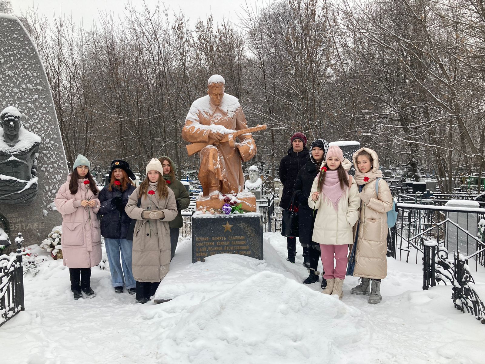 Опубликовано: 12.12.2022В честь дня памяти Неизвестного солдата и Героев России, ученики 9а класса традиционно возложили цветы к памятнику Неизвестного солдата на Арском кладбище и почтили память героев.
