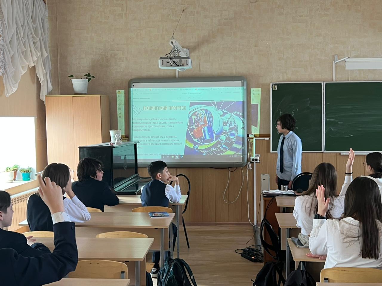 Опубликовано: 06.02.2023Для всех классов гимназии прошёл Всероссийский внеурочный час "Разговор о важном" на тему "День российской науки!".