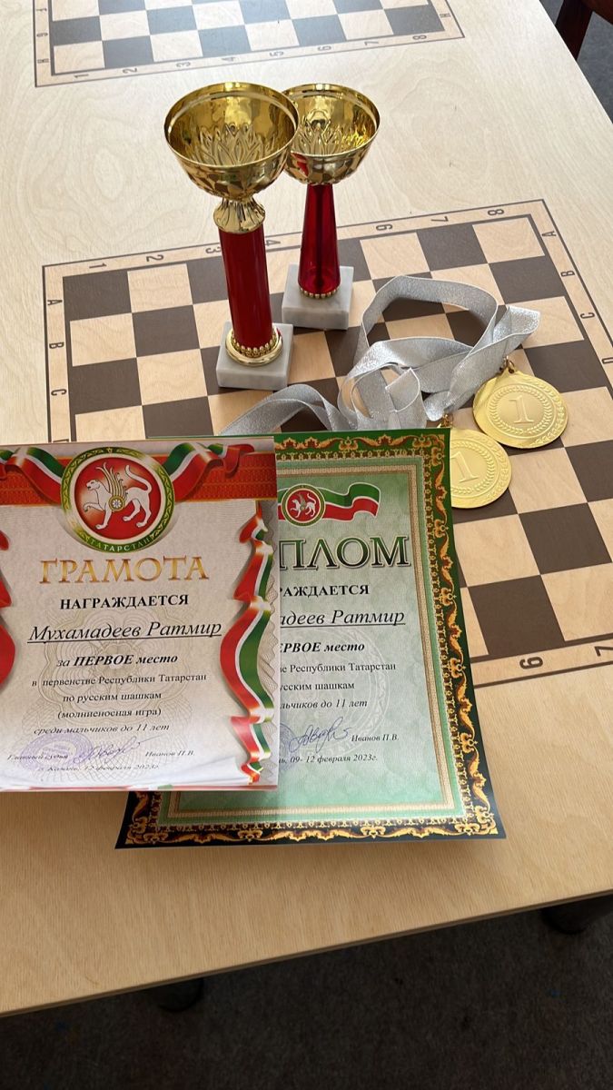 Опубликовано: 13.02.2023Мухамадеев Ратмир ученик 3 "В" класса занял два 1 места в Первенстве Республики Татарстан по русским шашкам.