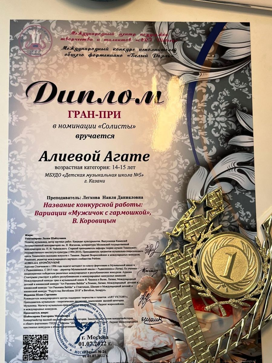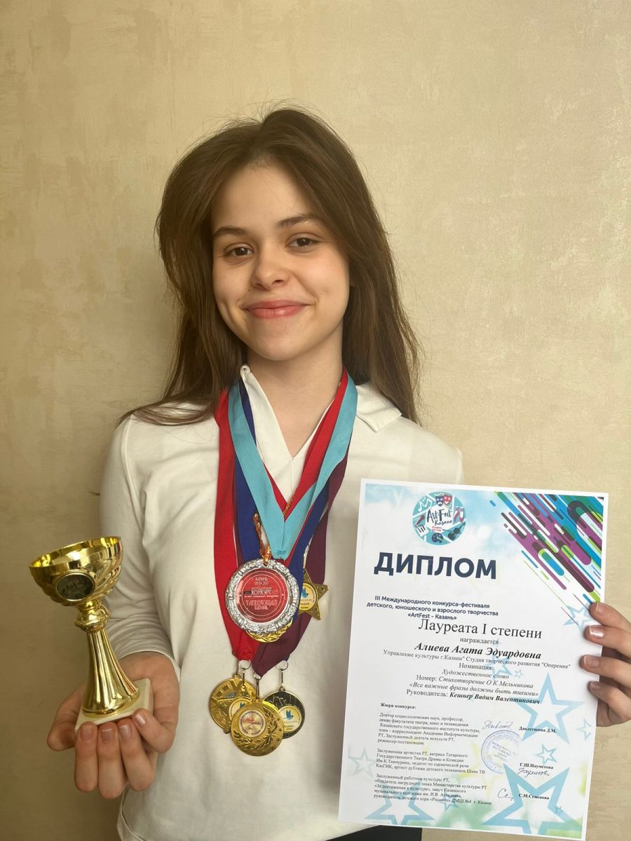 Опубликовано: 14.03.2023Поздравляем Аглиеву Агату 8 "А" класс за успехи: