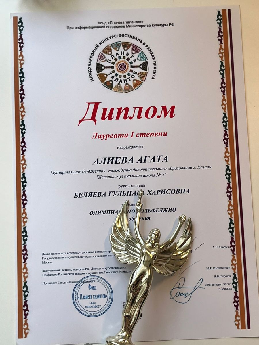 Лауреат 1 степени, олимпиада по сольфеджио