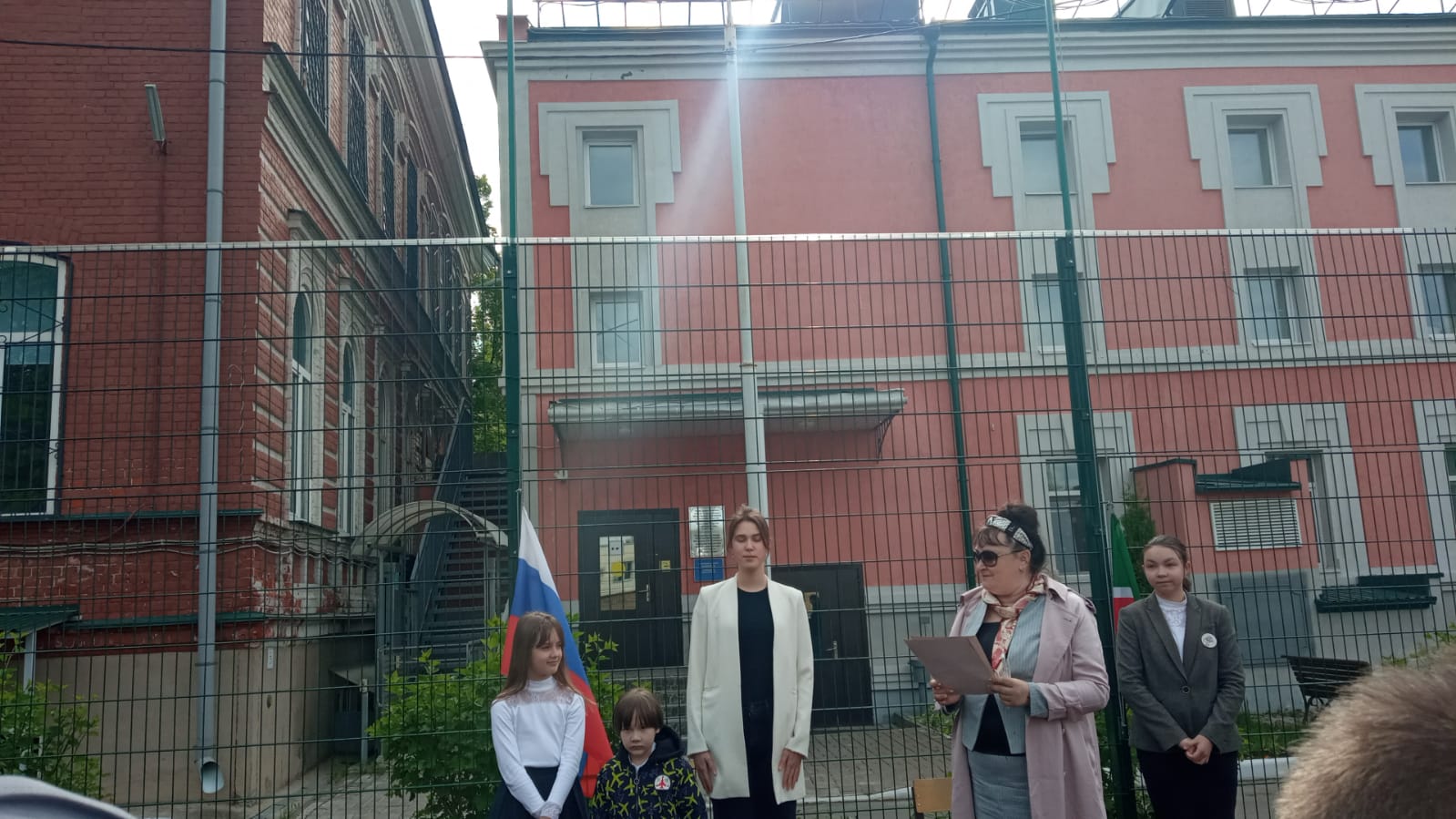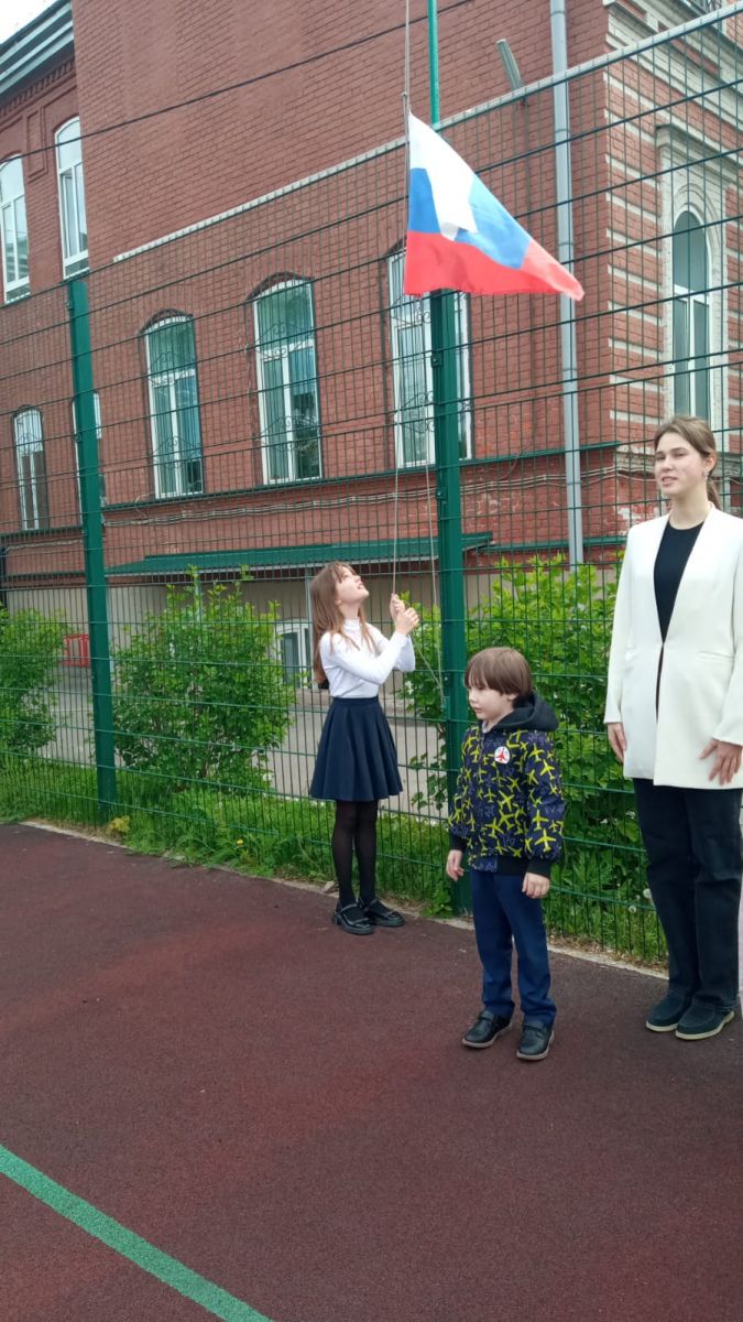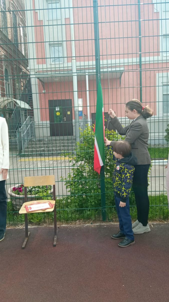 Опубликовано: 15.05.202315 мая прошла Торжественная линейка с поднятием флагов и пением гимнов РФ и РТ.