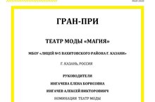 Театр моды «Магия» завоевало «Гран-при» на Всероссийском конкурсе — фестивале "Его величество-театр" , который прошел с 1-15 мая в городе Волгограде. На суд жюри была представлена коллекция «Старушки с зонтиками».