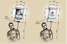 Требования к портретам: формат – А3 форма оформления – штендер. На портрете разметить фотографию участника Бессмертного полка, информацию о нем – ФИО, годы жизни, по возможности – место службы. Если нет фотографии, возможно размещение эмблемы Бессмертного полка.