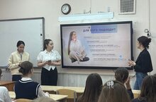 Сегодня в рамках реализации профориентационной программы «Билет в будущее» состоялась встреча обучающихся 11 классов с представителями Института социально-философских наук и массовой коммуникации К(П)ФУ. Перед ребятами выступила доцент кафедры общей и этнической социологии, кандидат философских наук - Гарифзянова Альбина Раисовна, и студенты 2 курса.