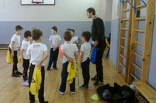 9 декабря в лицее у первоклассников прошел урок физкультуры, посвященный Дню футбола.Провел этот урок тренер футбольного клуба "Рубин" Чилимов Виталий Владимирович.