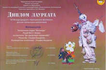 Поздравляем театральную студию "Непоседы" ,ставшую лауреатом XV Международного "Брянцевского фестиваля" детских театральных коллективов в г.Санкт-Петербурге.Руководитель Вашурова Г.Т.