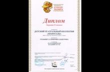 Поздравляем! Театральную студию "Непоседы" ( рук. Вашурова Г.Т.) , занявшую 2 место на Международном конкурсе театральных коллективов "На крыльях талантов". В этом же конкурсе получили гран- при ансамбль"Смайлики" ( рук. Гизатуллина К. Л)