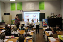 Сегодня 11 декабря 2012г. состоялся час общения на тему: «Ослепительная улыбка на всю жизнь » с компанией Колгейт-Палмолив ее участниками стали ученики 1 Б класса и классный руководитель Савенко Марина Анатольевна, которая в игровой форме дала советы своим первоклашкам -это тщательно соблюдать гигиену полости рта и использовать качественные фторсодержащие зубные пасты, щетки и зубные нити.