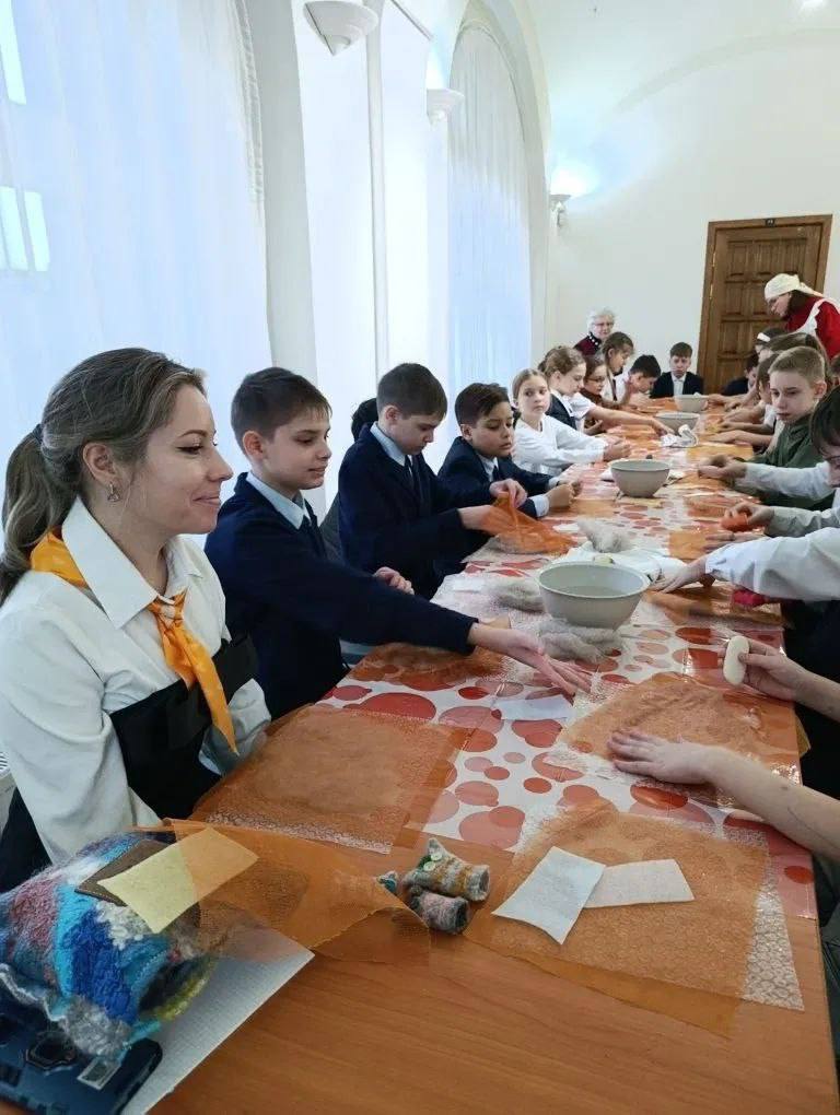 5Б класс совершил незабываемое путешествие по просторам народного искусства на выставке «Смыслы и промыслы» в Национальном музее РТ. Ребята своими глазами увидели огромное богатство традиционных ремёсел — от солнечного Дагестана до суровой Чукотки. Знакомые названия — гжель, хохлома, жостовская роспись, вологодское кружево — ожили, раскрывая свою историю и глубокий смысл.
