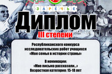 Ученица 11а класса, Сафронова Елизавета, приняла участие в Республиканском конкурсе исследовательских работ «Моя семья в истории страны».