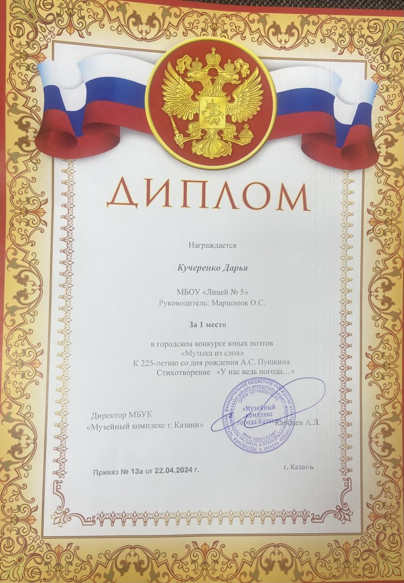 27 апреля состоялось награждение победителей городского конкурса юных поэтов «Музыка из слов», организатором которого стал МБУК «Музейный комплекс г. Казани».