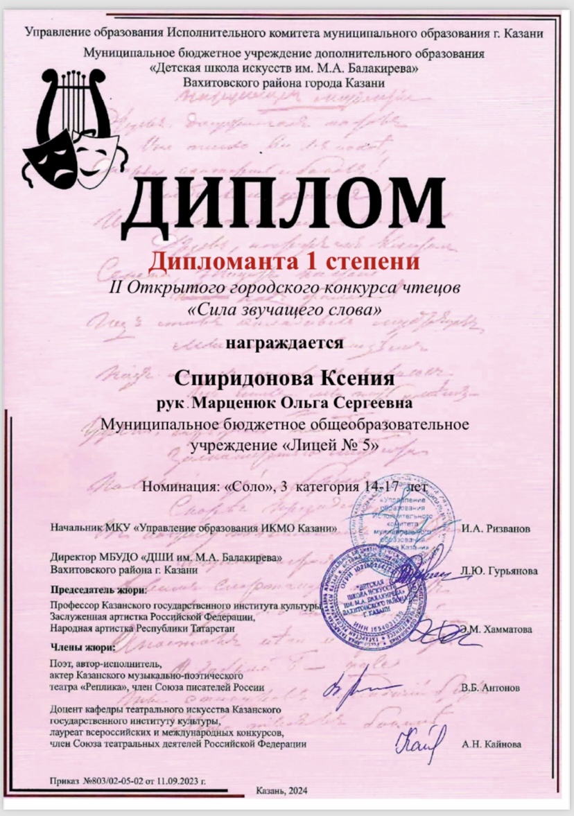 Муниципальное бюджетное общеобразовательное учреждение "Лицей №5" Вахитовского района г. Казани