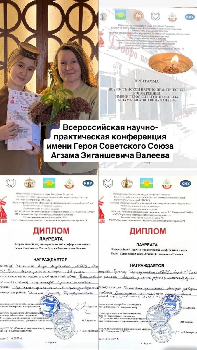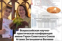 Поздравляем Хасамееву Аиду Айдаровну, ученицу 8А класса, с участием во Всероссийской научно-практической конференции имени Героя Советского Союза Агзама Зиганшевича Валеева