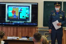 Для учеников 4-х классов провел урок старший инспектор отделения НД и профилактической работы по Вахитовскому району г. Казани «Центральный» УНД и ПР ГУ МЧС России по РТ Дементьев С.В. Сергей Владимирович рассказал учащимся о правилах пожарной безопасности, а также показан учебный мультфильм о правилах эвакуации при пожаре.