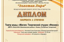 Поздравляем Театр моды «Магия»( руководитель Ингачёв А.В.) с Победой в Международном конкурсе искусства и творчества, который проходил в г. Санкт-Петербург. Ну суд жюри представлена коллекция костюмов по мотивам татарских костюмов «ИЗ прошлого в будущее!»