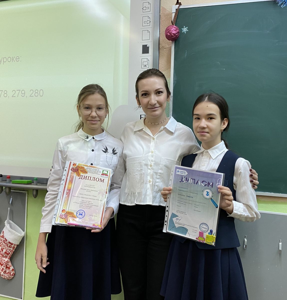 Ученики 6В класса, Асянова Инесса и Гузев Кирилл, заняли 2 место. Зарипова Алина (6Б класс) и девочки 6А класса, Сагидуллина Камилла и Парамонова Ульяна, получили дипломы 3 степени.