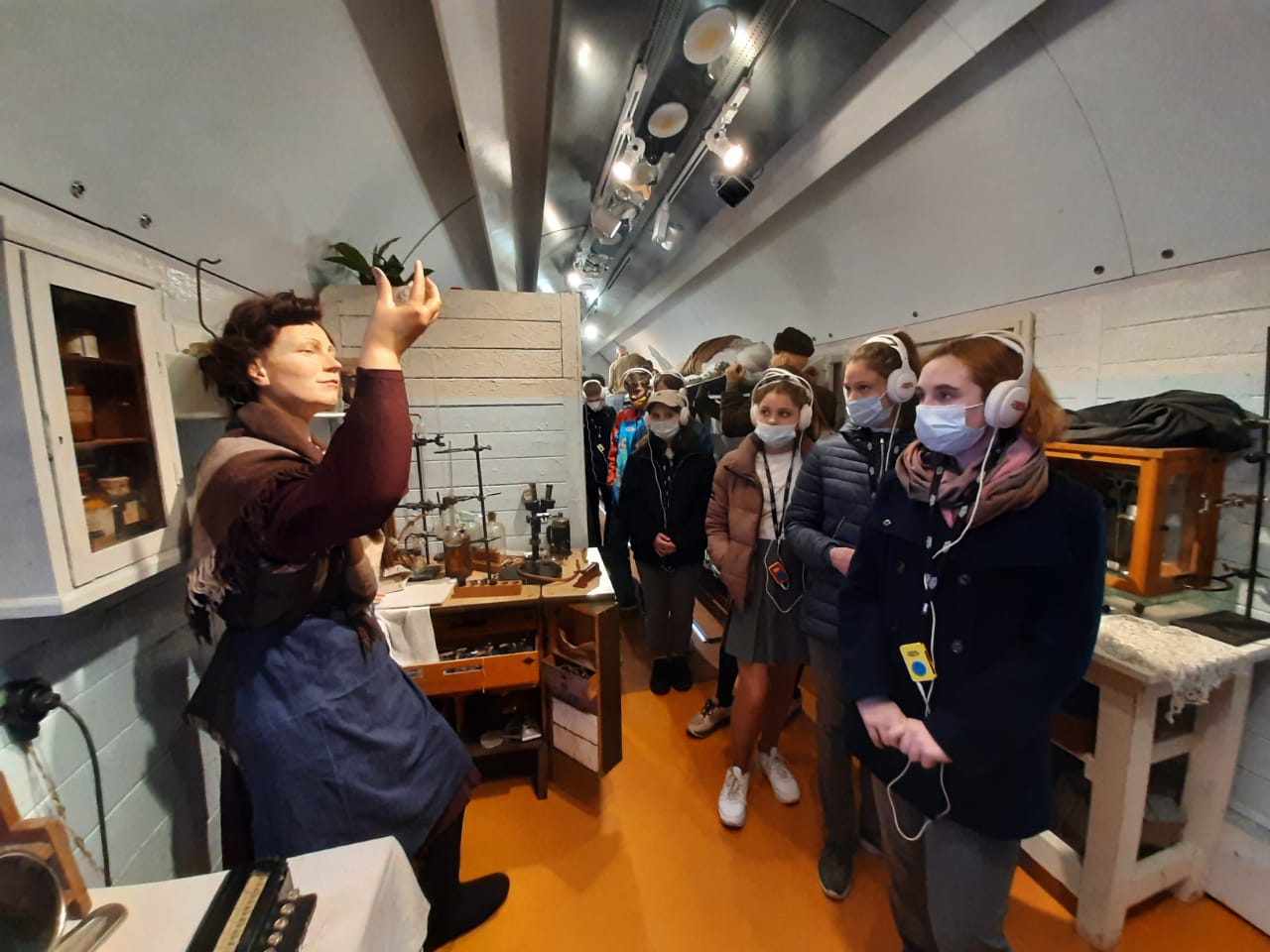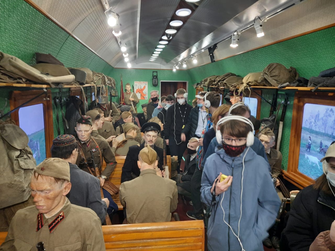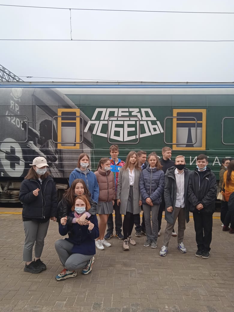 8 а класс 27 апреля 2021 года на станции ж/д «Казань» принял участие в реализации масштабного просветительского проекта «Поезд Победы», реализуемого АНО «Историко-художественная творческая мастерская «Невский баталист» при поддержке Министерства науки и высшего образования Российской Федерации и ОАО «Российские железные дороги».