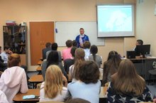 Для Марка организовали встречу с учениками 9 и 10 классов. Рассказ его был на английском языке, что дало возможность познакомиться не только с биографией Анны Франк, но и проверить свои знания английского языка.