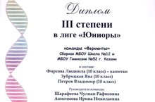Команда нашей школы завоевала почетное третье место в юбилейном, десятом всероссийском турнире юных биологов. Впервые команда из Татарстана удостоена такой награды. Поздравляем лауреатов турнира и благодарим преподавателей биологии нашей школы И.Н. Анисимову и Ч.Р. Шарафееву за подготовку команды.