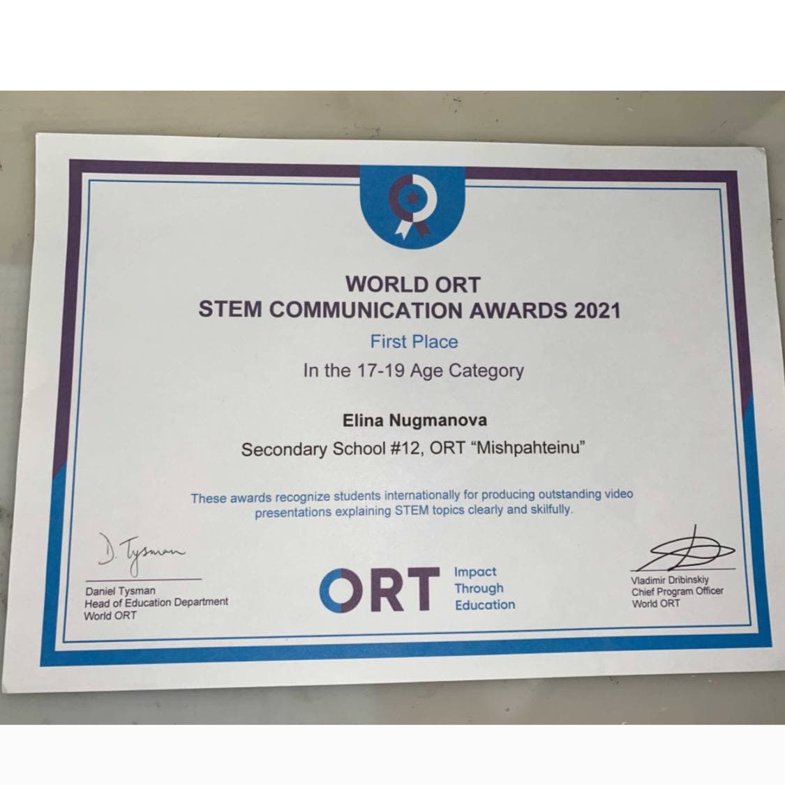 World ORT STEM Communication Awards 2021 (World ORT)