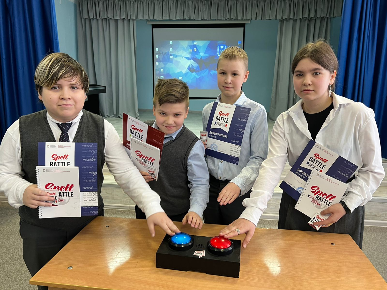 Это орфографический конкурс, целью которого является проверка уровня грамотности, расширение словарного запаса, а также развитие языковых навыков. «Произнеси слово по буквам, докажи, что последнее слово за тобой!» - таков девиз этого конкурса. Пятиклассникам предстояло не только правильно сказать слово по буквам, но и оказаться при этом первым, быстро среагировать и нажать на кнопку.