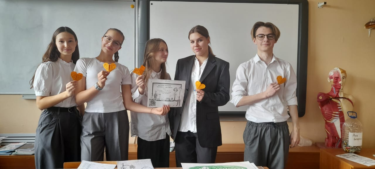 Сегодня учащиеся 8 Б класса на уроке биологии отправились в экспедицию по лабиринту человеческого тела. Вооружившись логикой и знаниями, они проникли внутрь организма и познали тайны тела человека. Для успешного прохождения квеста ребятам понадобились знания из курса анатомии человека. Например, названия и внешний вид внутренних органов, количество хромосом в клетках, количество фаланг пальцев, зубная формула человека. Кроме этого квест-игра - эффективная форма развития творческих способностей учащихся. В технике оригами учащиеся создавали сердца.