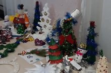 Учащиеся начальной школы своми руками сделали новогодние ёлки.