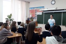Дурманаев Николай, выпускник 2018 года, руководитель Общественного центра гражданско-патриотического воспитания студенческой молодежи "Волонтеры Победы" при КАТТ им. А.П. Обыденнова провел лекцию среди учеников нашей школы на тему "Создание отряда Волонтеры Победы". Дети слушали очень внимательно, задавали вопросы и активно участвовали в обсуждениях.