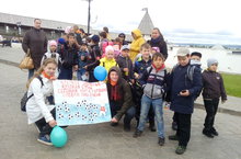 Наши ребята провели акцию для детей и взрослых: "Крепкое здровье-крепкая страна, сегодня нам в футболе победа лишь нужна".