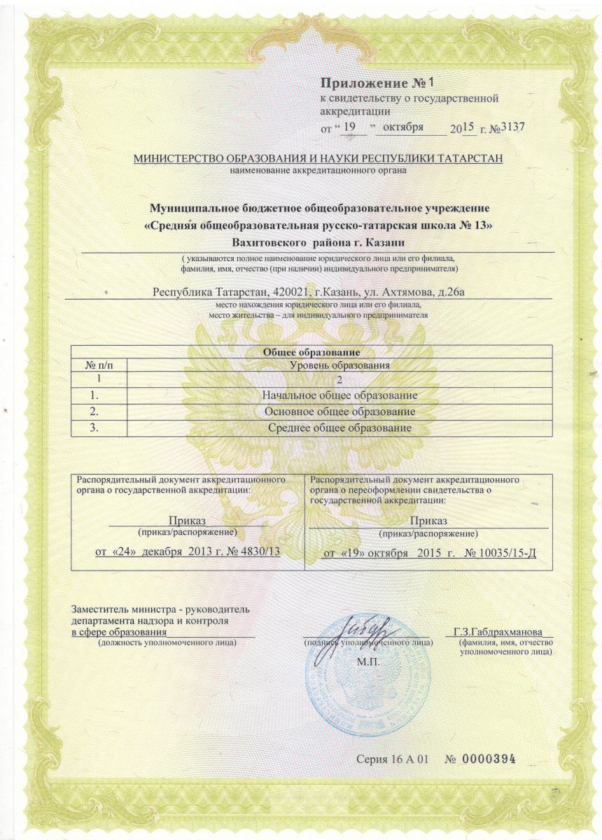 Приложение №1 (к свидетельству о государственной аккредитации)