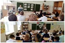 В 1А классе прошёл классный час. Тема: " Города герои". Дети смотрели документальный фильм о войне, читали стихи, узнали о наградах, которые вручались бойцам. Познакомились с подвигами наших героев - М. Джалилем, А. Алишем, Д. Карбышевым.