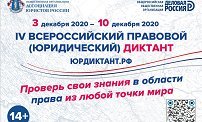С З по 10 декабря 2020 года в целях оценки уровня правовой грамотности населения пройдет Четвертый Всероссийский правовой (юридический) диктант. Приглашаем принять участие в диктанте. Подробности см. по ссылке