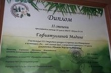Поздравляем ученицу 2 класса Мадину, которая заняла второе место в XII Открытом конкурсе "Сохраним леса Татарстана" в номинации "Лес - мой зеленый друг", под руководством М.Г. Абрамовой